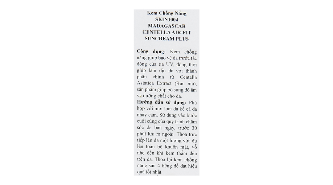 Kem chống nắng Skin1004 Madagascar Centella Air-Fit Suncream Plus làm dịu làn da tuýp 50ml