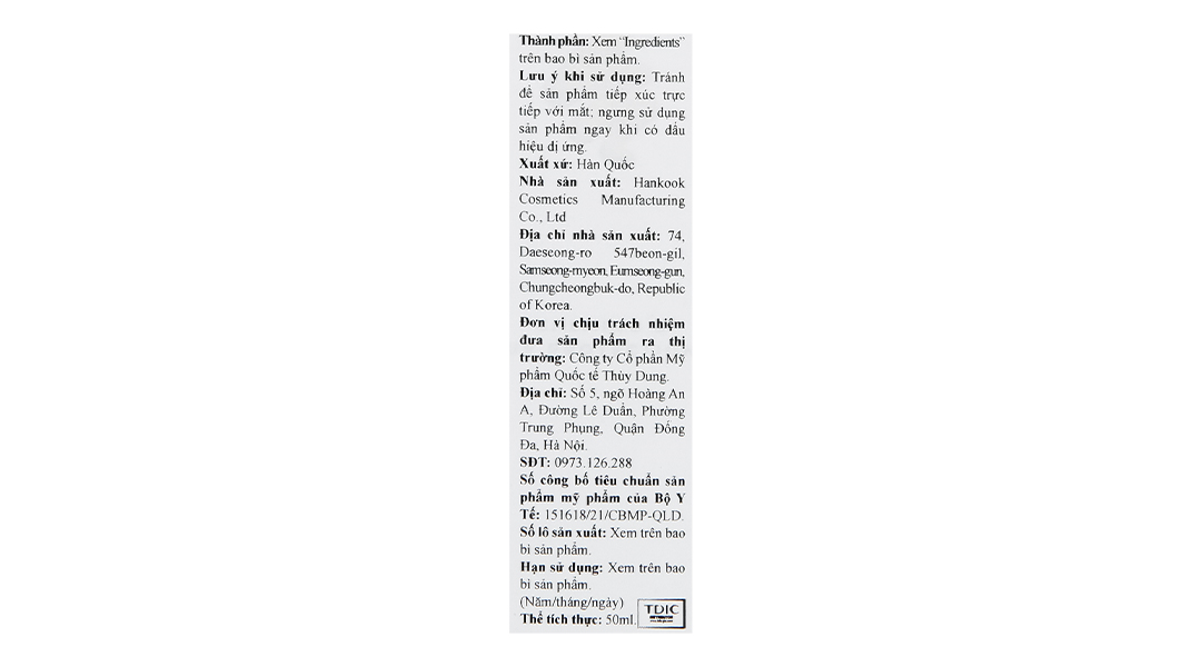 Nhà sản xuấtHankook Cosmetics Manufacturing Co., Ltd