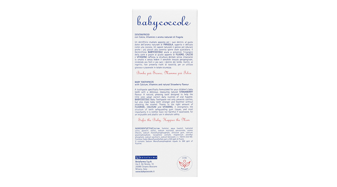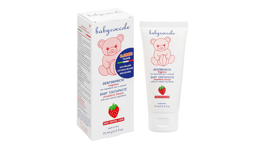 Công thức kem đánh răng Babycoccole dâu 75ml giúp bảo vệ răng vượt trội: Thành phần cân bằng gồm 0,095% fluoride, cung cấp thêm canxi, vitamin và các hương vị tự nhiên giúp củng cố cấu trúc của răng mà không gây hại cho các mô nướu, bảo vệ men răng ngay từ đầu đời.