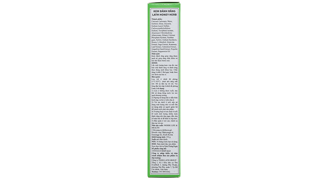 Kem đánh răng Lath Honey Herb giúp răng chắc khỏe, hơi thở thơm mát tuýp 150g