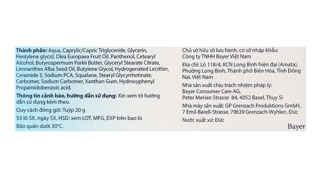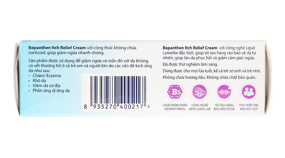 Bepanthen Itch Relief Cream không chứa chất nhũ hóa có thể làm hỏng cấu trúc lớp lipid mỏng manh.