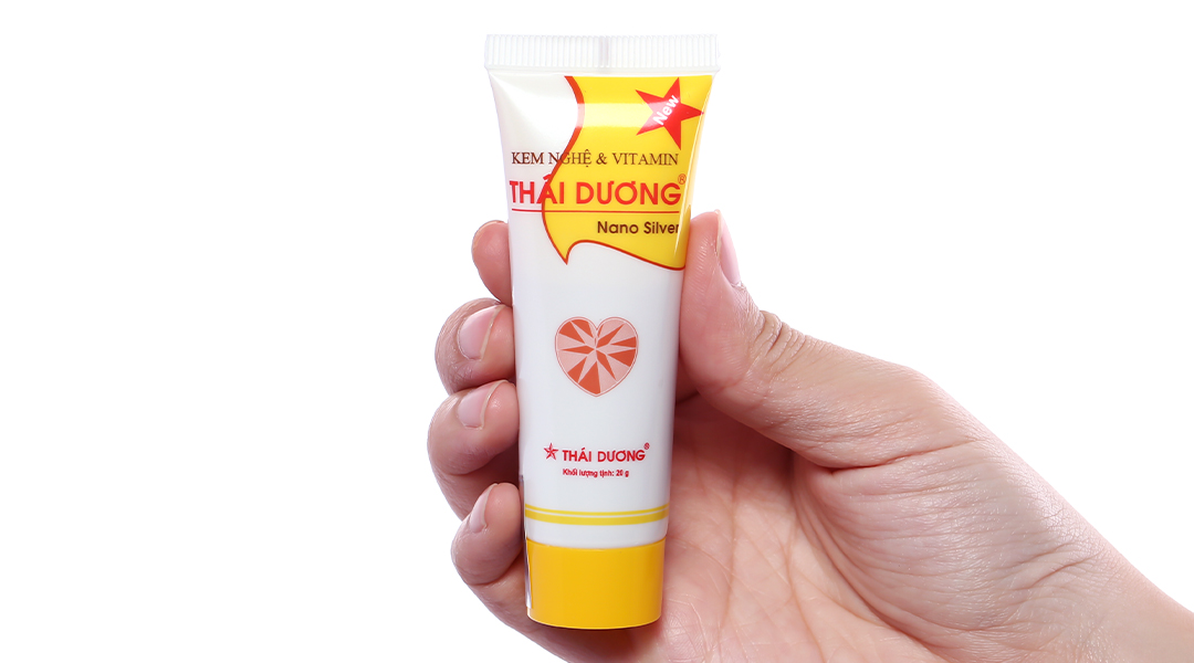 Kem nghệ Thái Dương Nano Bạc là dạng kem trị mụn, ngừa thâm, hiệu quả trong việc nuôi dưỡng làn da đã bị thương tổn trở nên mềm mại, mịn màng và khỏe mạnh. Sản phẩm chứa keo Bạc, có tác dụng tự chữa lành các viết thương hở trên da, đồng thời nhờ đặc tính kháng viêm, kháng khuẩn giúp làm dịu làn da nhạy cảm, giảm hình thành mụn, không gây thâm sẹo trong tương lai.