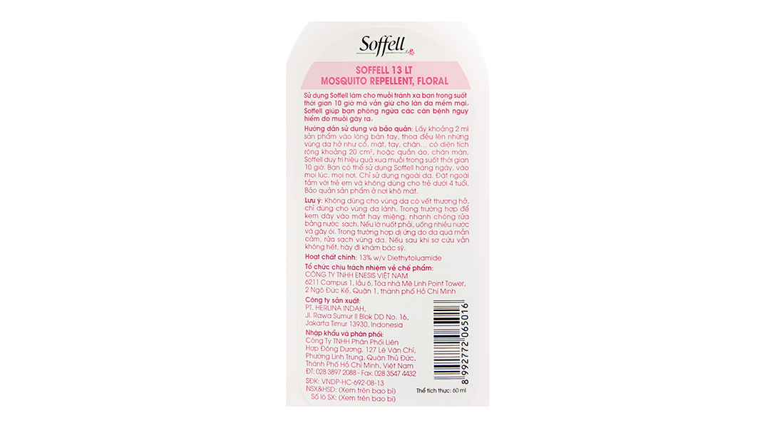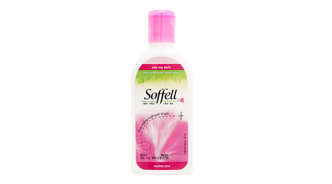 Sử dụng Soffell hương hoa làm cho muỗi tránh xa bạn trong suốt thời gian 10 giờ mà vẫn giữ cho làn da mềm mại, kem bôi côn trùng Soffell giúp bạn phòng ngừa các căn bệnh nguy hiểm do muỗi gây ra.