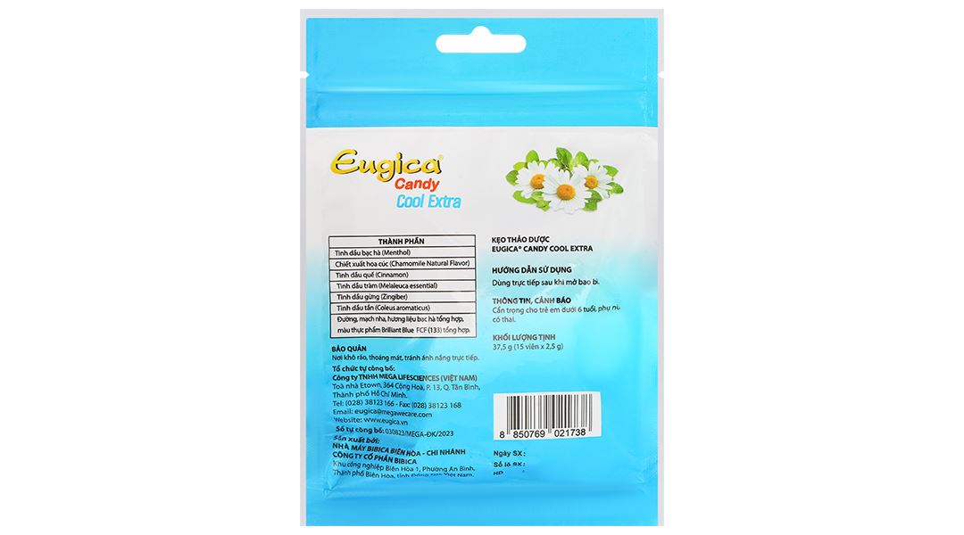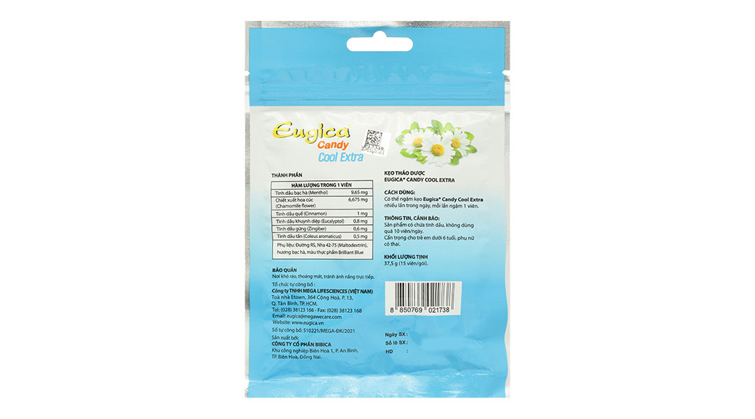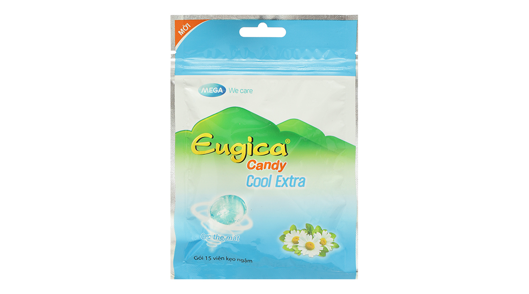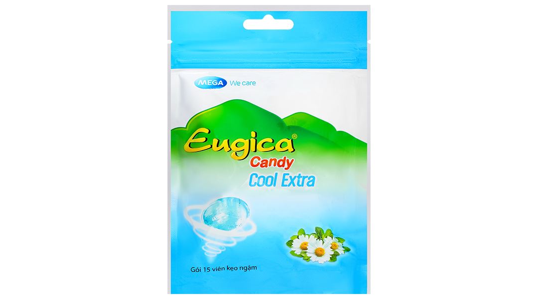 Kẹo ngậm thảo dược Eugica Candy Cool Extra giảm đau họng gói 15 viên