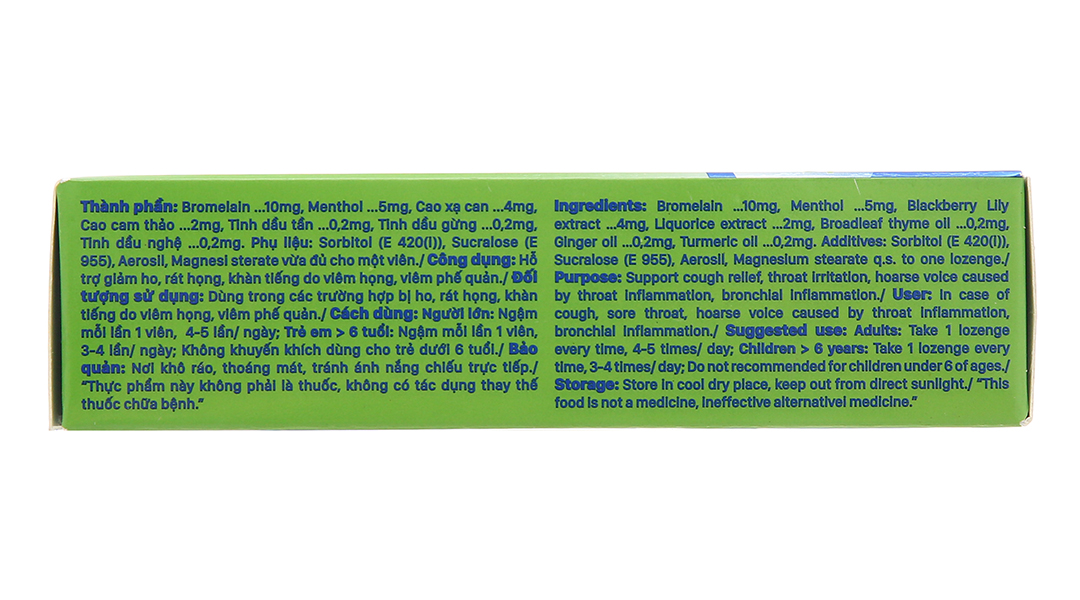 - Trẻ em > 6 tuổi: Ngậm mỗi lần 1 viên, 3 – 4 lần/ngày.