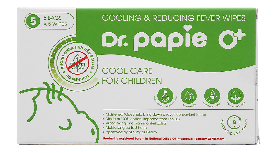 Khăn hạ sốt Dr.papie 0+ Không chứa tinh dầu bạc hà và Menthol: Dùng cho trẻ sơ sinh và trẻ nhỏ