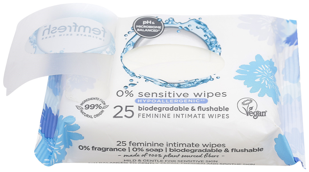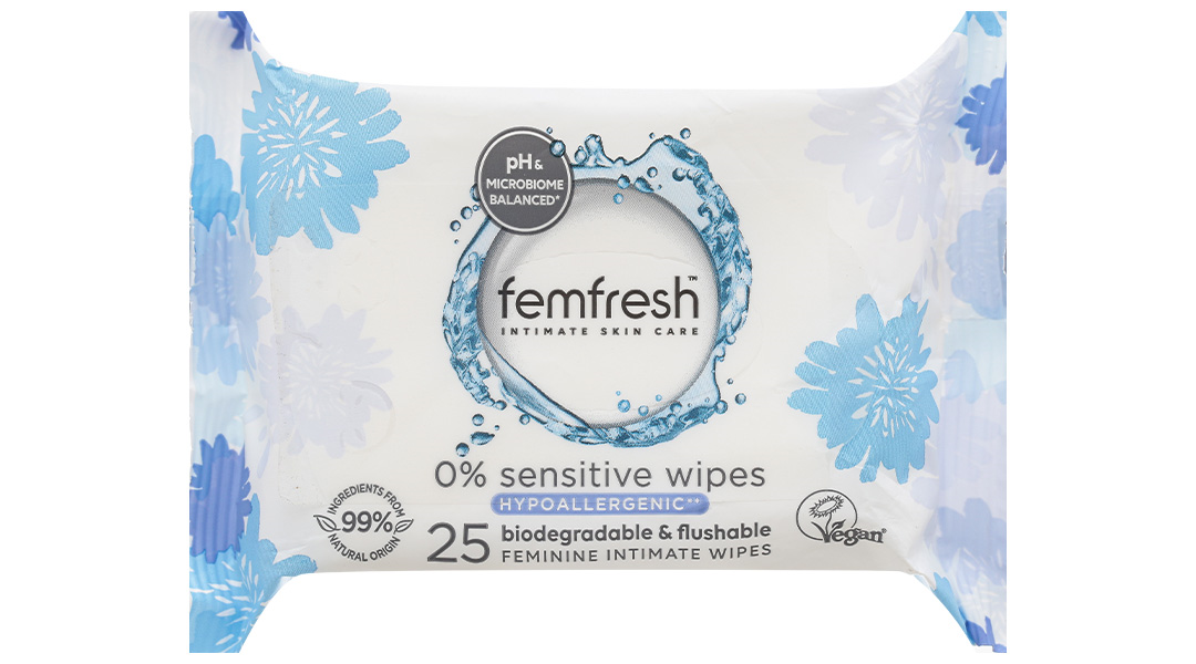 Khăn ướt vệ sinh vùng kín phụ nữ Femfresh Intimate Skin Care 0% Sensitive Wipes là sản phẩm vệ sinh vùng kín phụ nữ chuyên dụng dành cho da nhạy cảm.