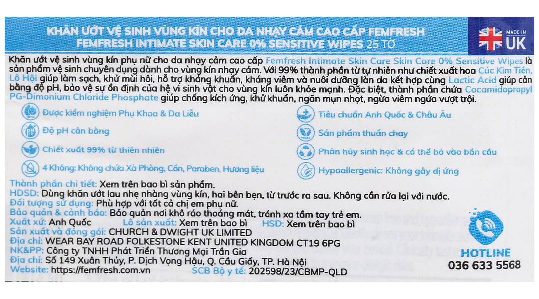 4 không: Không chứa xà phòng, cồn, paraben, hương liệu.