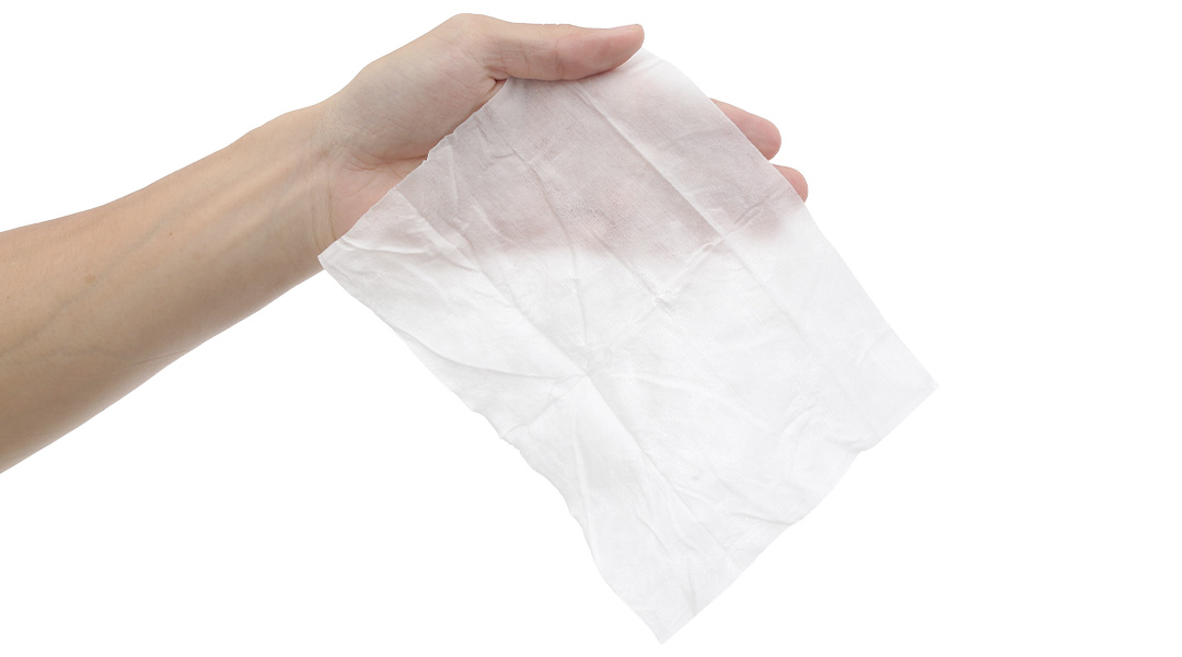 Dùng khăn giấy ướt phụ khoa lau nhẹ nhàng vùng kín, hai bên bẹn. Hãy lau vùng kín từ trước ra sau như cách bạn làm với giấy vệ sinh, không cần rửa lại với nước.