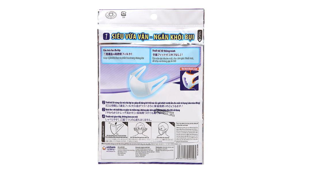 Khẩu trang Unicharm không có tác dụng ngăn chặn khí độc hại.