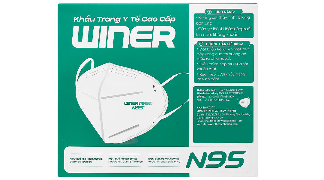 - Khẩu trang Winer N95 có cấu trúc 4 lớp lọc cao cấp.