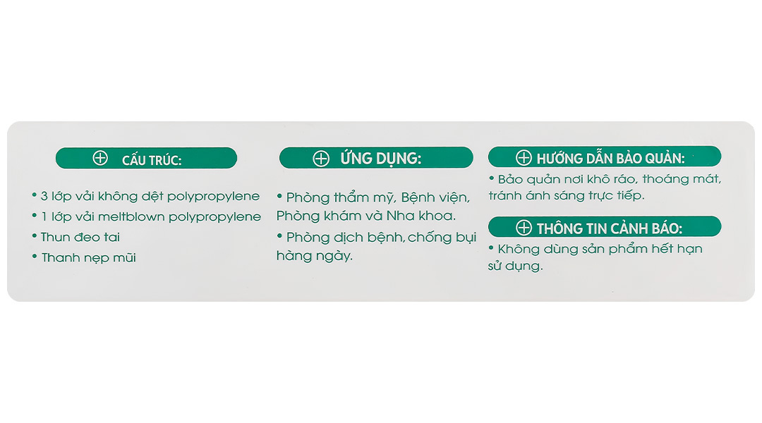 - 1 lớp vi lọc Meltblown kháng khuẩn.
