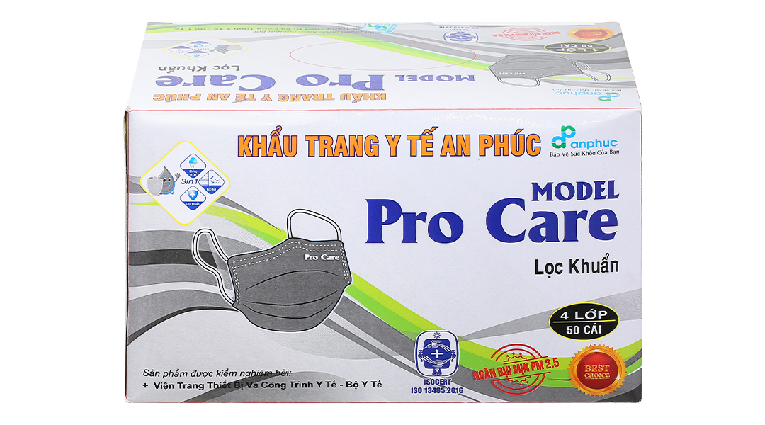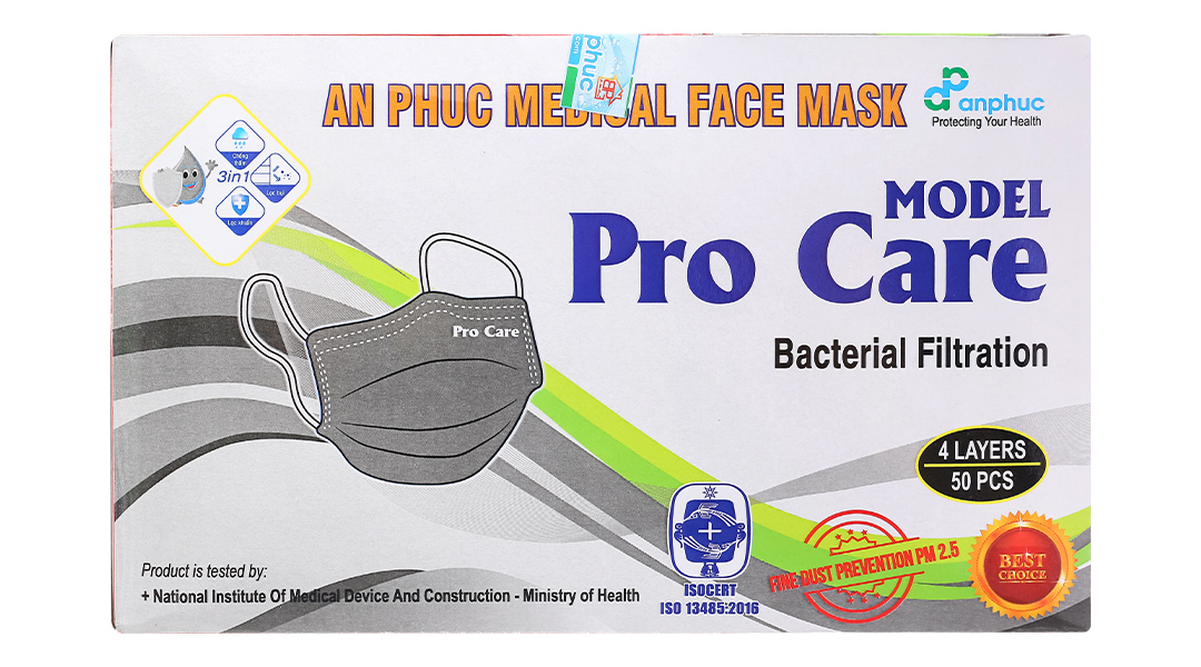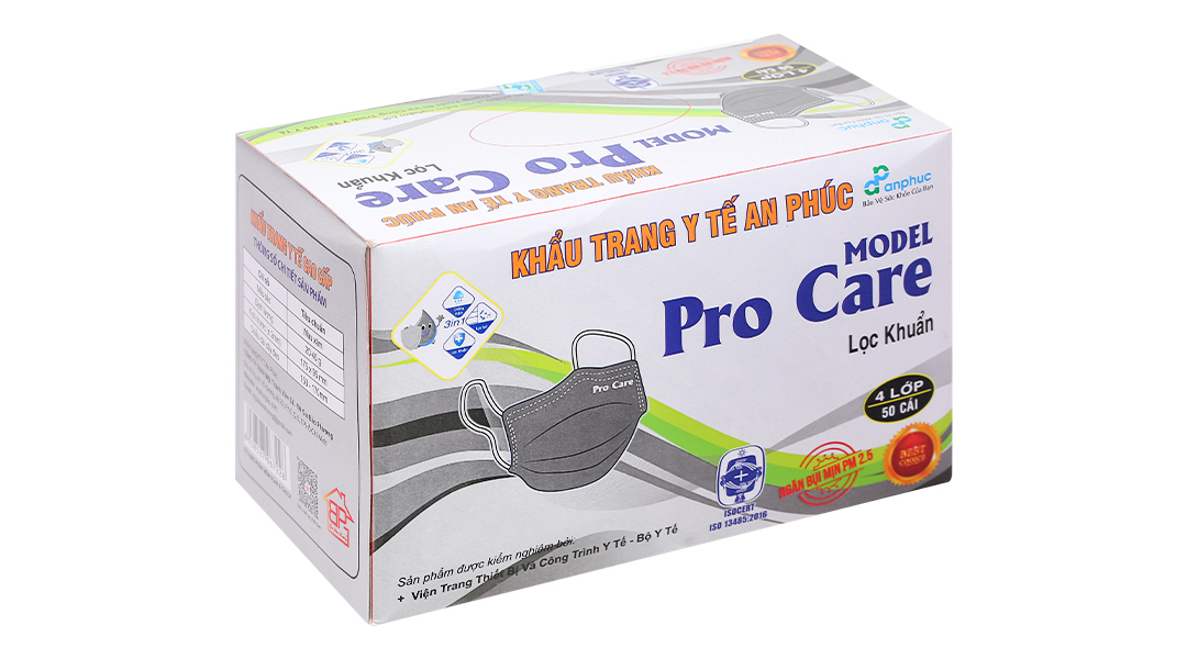 Khẩu trang y tế An Phúc Model Pro Care 4 lớp màu xám hộp 50 cái