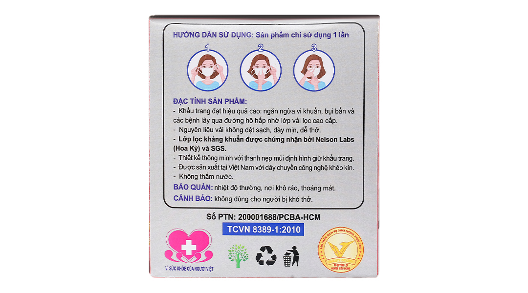 Công dụngNgăn ngừa vi khuẩn, bụi bẩn và các bệnh lây qua đường hô hấp nhờ lớp vải lọc cao cấp