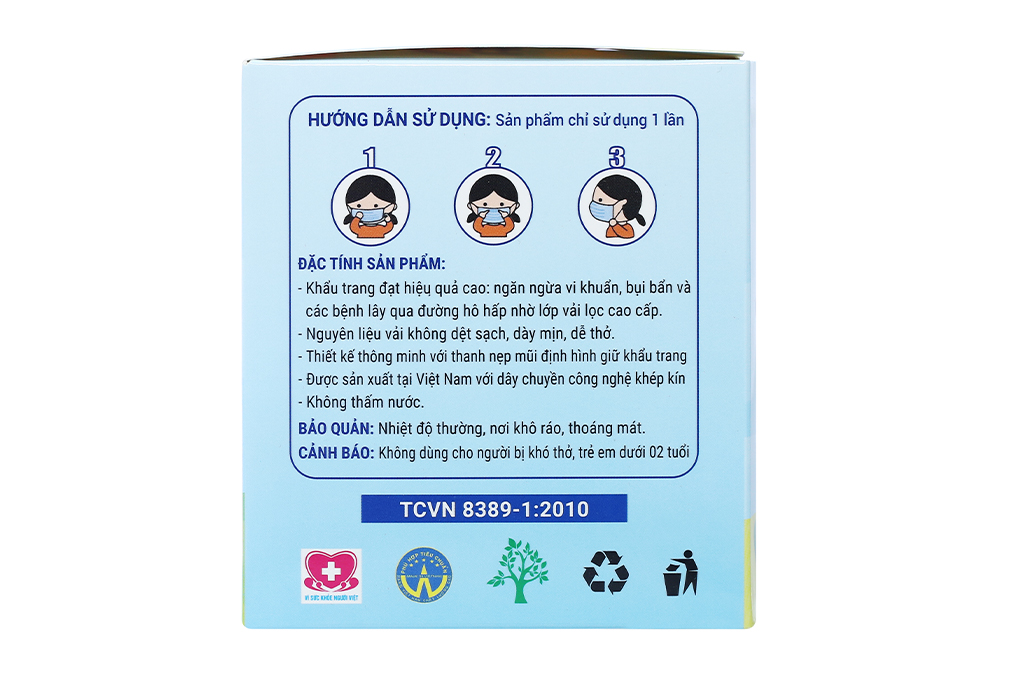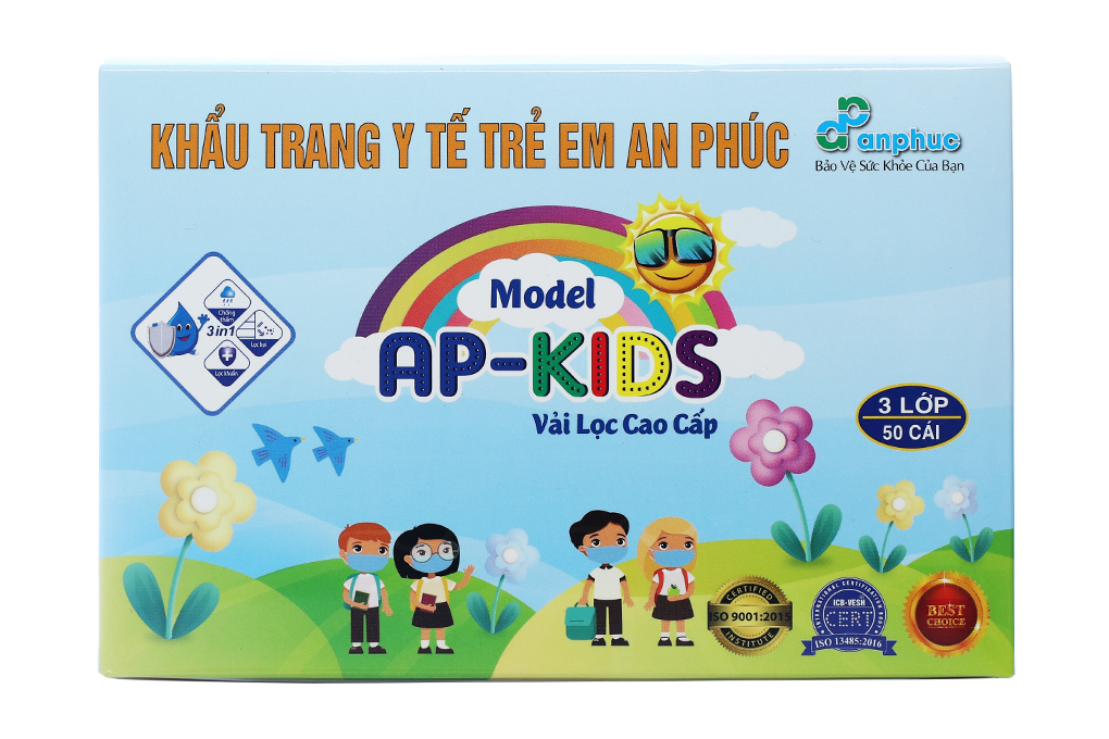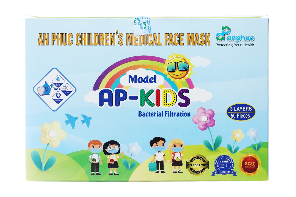 Khẩu trang y tế trẻ em An Phúc 3 lớp có họa tiết đạt hiệu quả cao ngăn ngừa vi khuẩn, bụi bẩn và các bệnh lây qua đường hô hấp nhờ lớp vải lọc cao cấp.