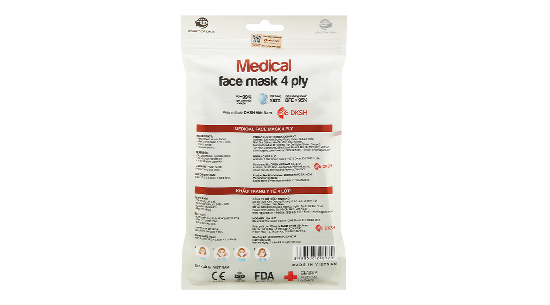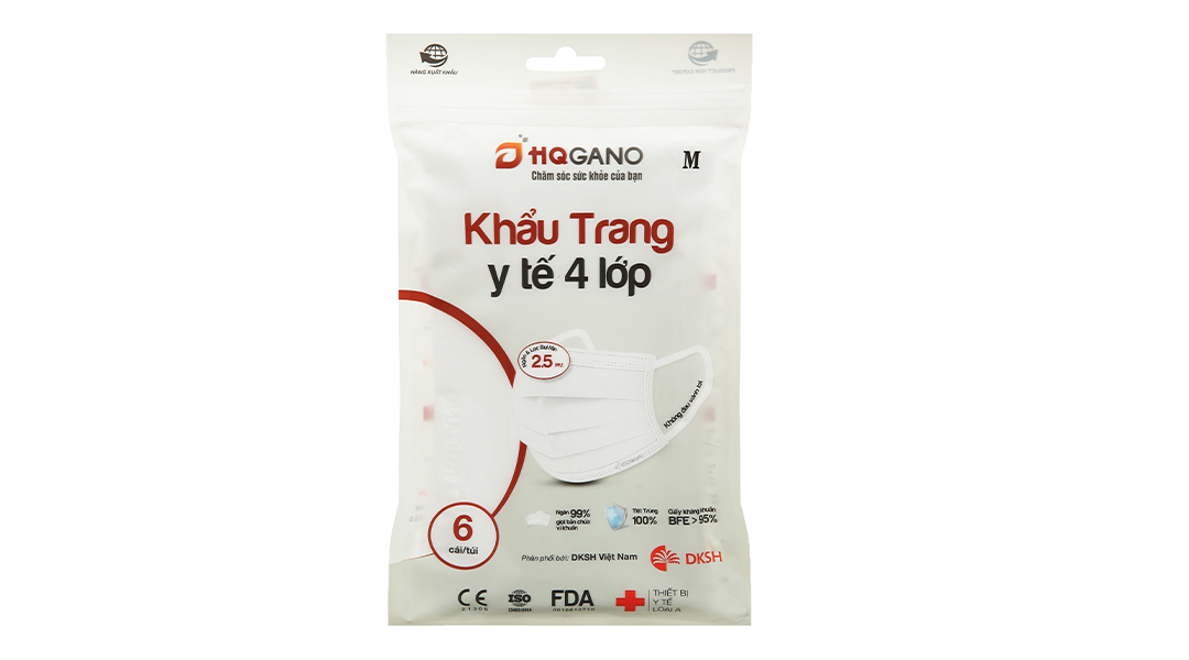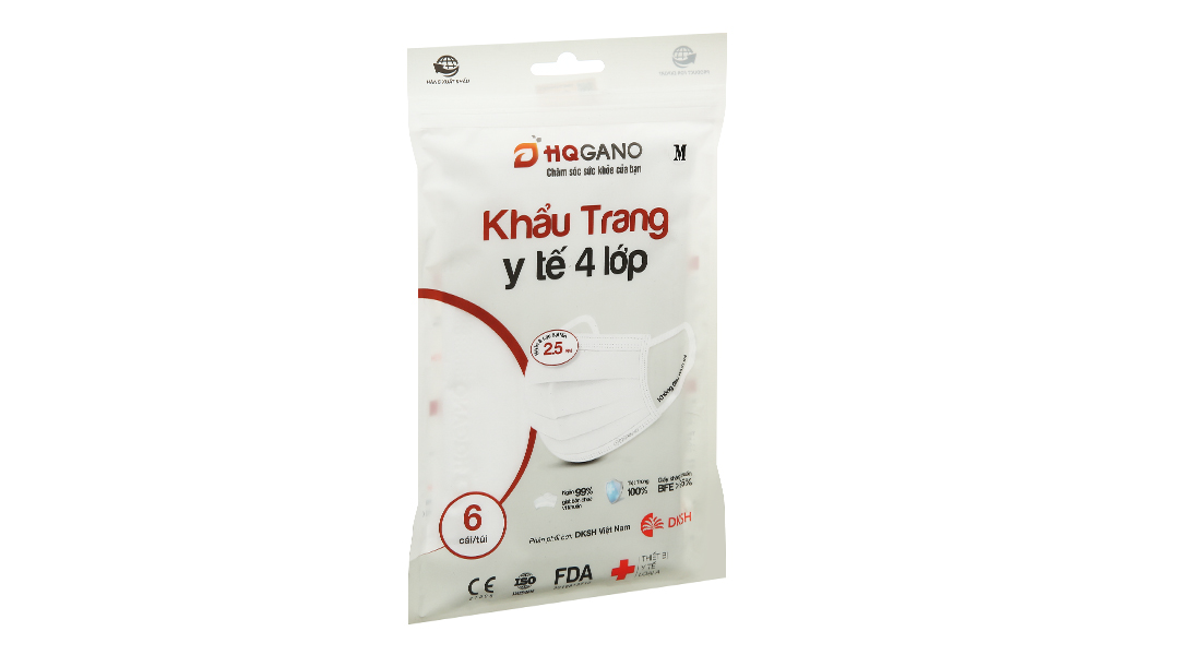 Khẩu trang y tế HQ Gano 4 lớp màu trắng gói 6 cái có những ưu điểm nổi bật sau: