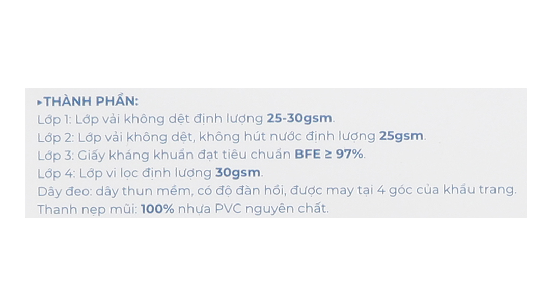 Lớp 3: Giấy kháng khuẩn đạt tiêu chuẩn BFE ≥ 97%.