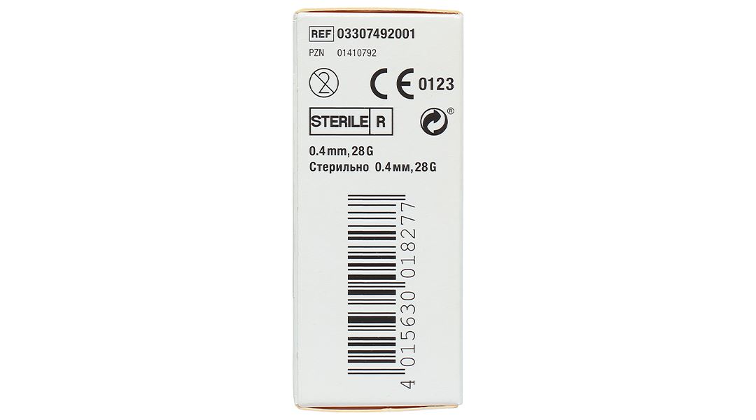 - Đầu kim bằng kim loại không gỉ vô trùng, kích thước đầu kim: 0,4mm.