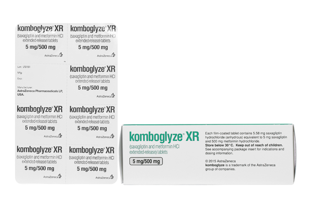 Viên KOMBOGLYZE XR (saxagliptin và metformin HCI phóng thích kéo dài) có chứa hai hoạt chất chống tăng đường huyết, dạng uống, dùng điều trị bệnh đái tháo đường týp 2: saxagliptin và metformin hydroclorid.