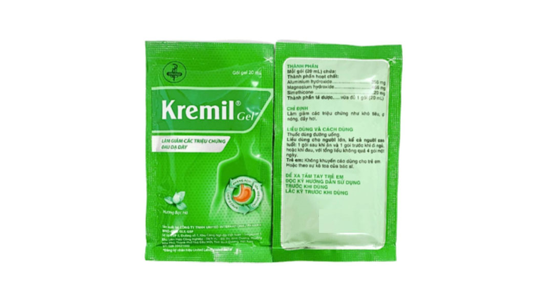 Nhôm hydroxyd và magnesi hydroxyd trung hòa HCl trong dạ dày và làm giảm các triệu chứng dư acid có liên quan đến loét tiêu hóa, viêm dạ dày, viêm thực quản và khó tiêu. Sự phối hợp giữa nhôm hydroxyd và magnesi hydroxyd trong kremil gel có tính kháng acid mạnh, do đó trung hòa hiệu quả acid trong dịch vị, đồng thời ít có tác dụng phụ. Simethicon giúp loại bỏ bong bóng hơi ở đường tiêu hóa, làm giảm đầy hơi và khó tiêu.