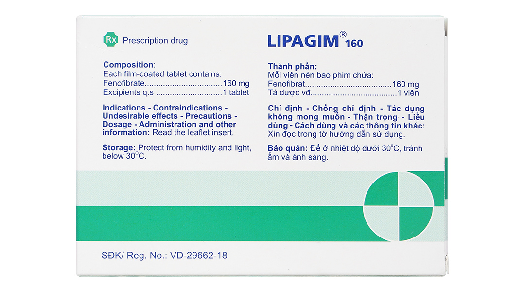 Mỗi viên nén bao phim Lipagim 160 chứa: