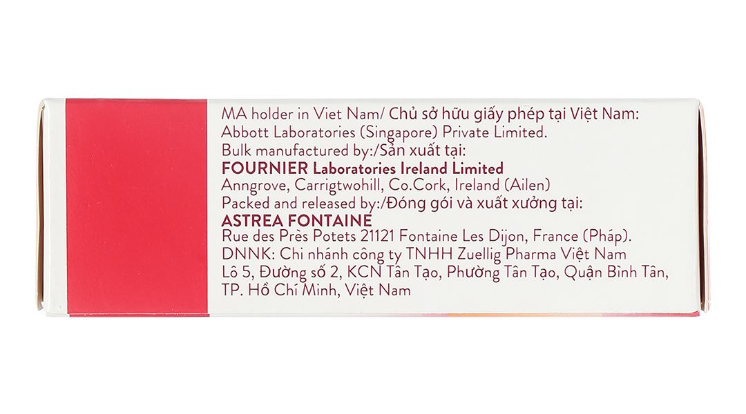 Cơ sở sản xuất bán thành phẩm: Fournier Laboratories Ireland Limited.
