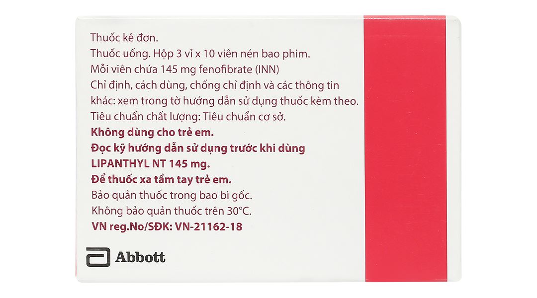 Thành phần hoạt chất: fenofibrat (dạng hạt nano) 145 mg.