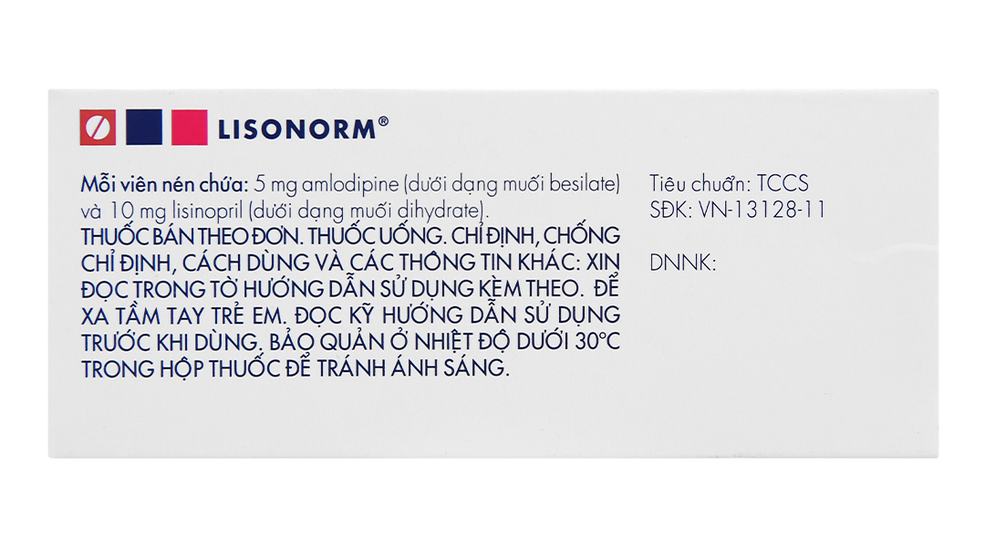 Lisonorm dược phối hợp với liều cố định từ hai hoạt chất là lisinopril và amlodipine.
