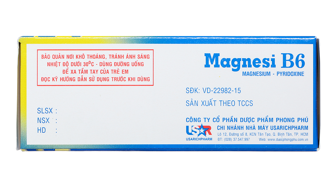 Magnesi B6 Phong Phú trị thiếu magie, giảm lo âu, căng thẳng (5 vỉ x 10 viên)