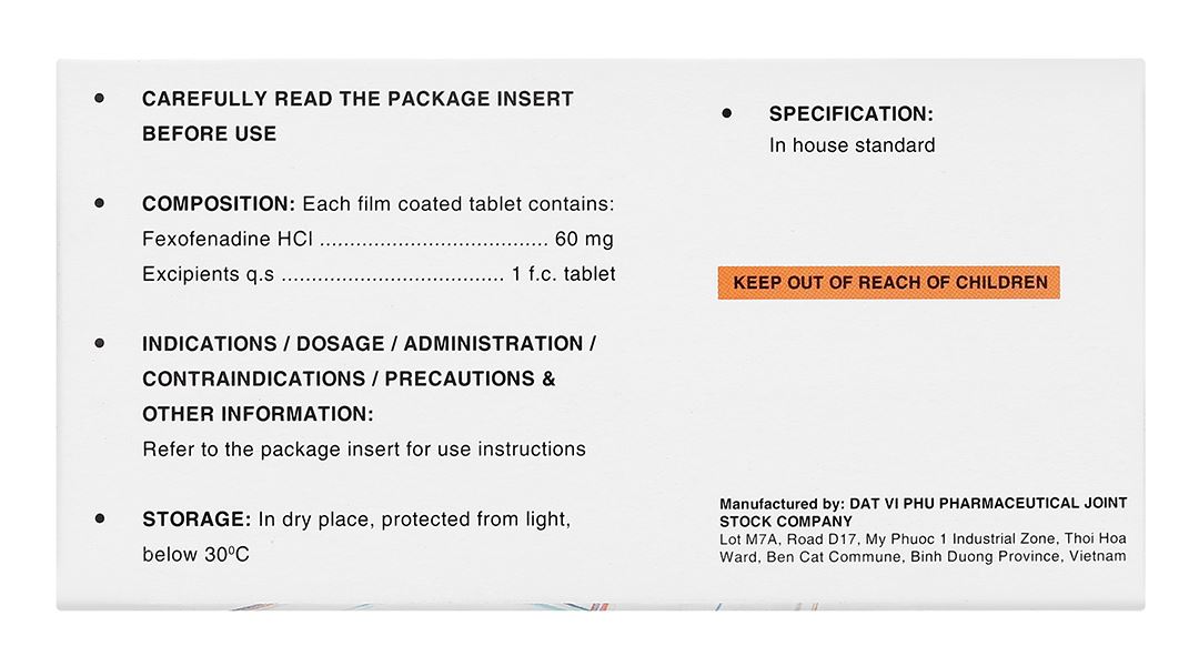 Hoạt chấtFexofenadin HCl