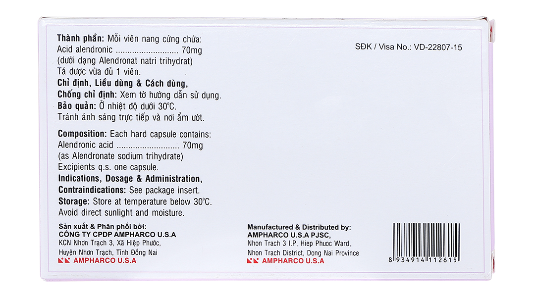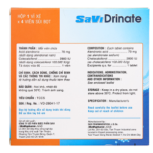 - Hoạt chất: Acid Alendronic 70,00 mg (dưới dạng Alendronat natri trihydrat 91,37 mg).