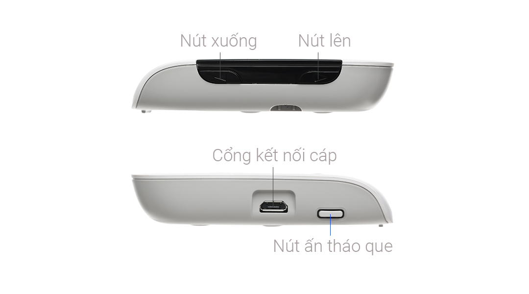 - Kết nối với máy tính: Cắm đầu nhỏ của cáp USB vào máy đo, cắm đầu to của cáp USB vào cổng USB trên máy tính. Bật máy đo. Trên máy tính: Khởi động phần mềm kiểm soát bệnh đái tháo đường và bắt đầu truyền tải dữ liệu. Máy đo sẽ truyền tải dữ liệu đó sang phần mềm.