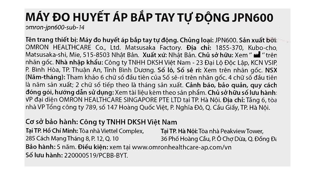 Máy đo huyết áp bắp tay OMRON JPN 600
