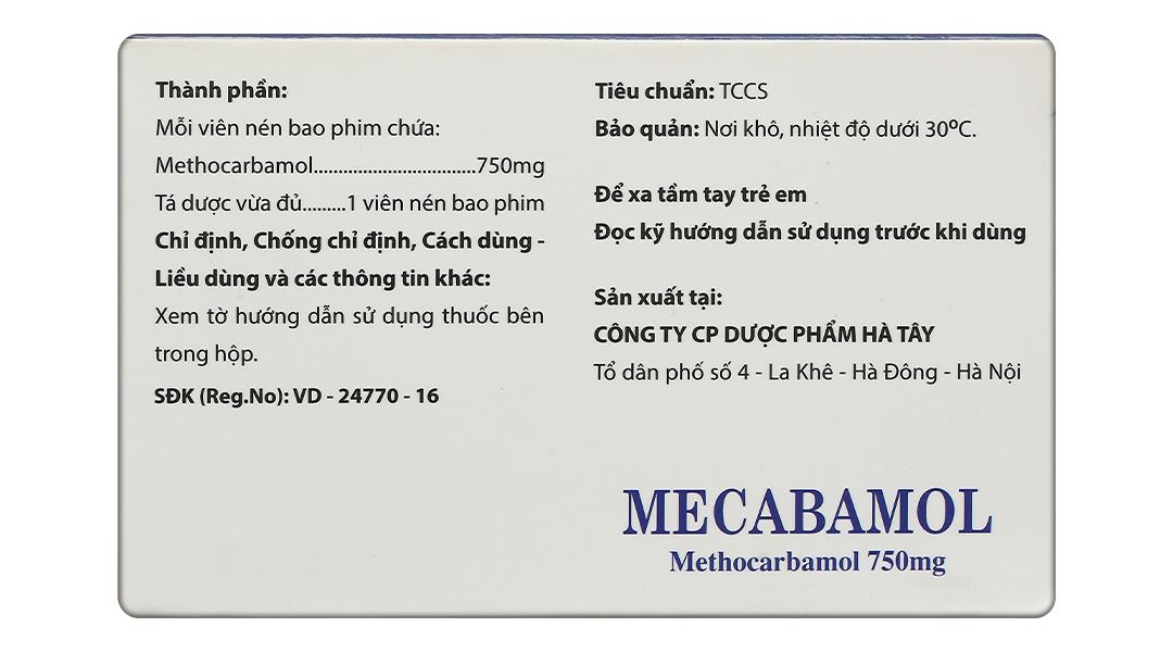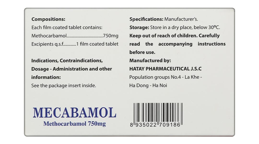 - Thành phần dược chất: Methocarbamol 750mg.