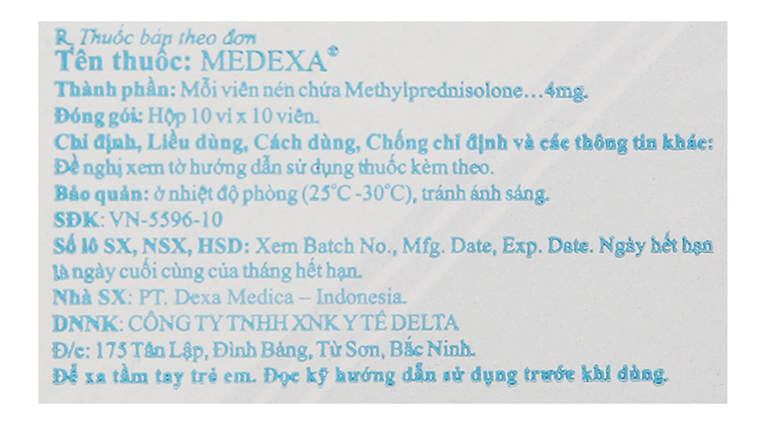 Medexa 4mg thuốc kháng viêm, ức chế miễn dịch (10 vỉ x 10 viên)
