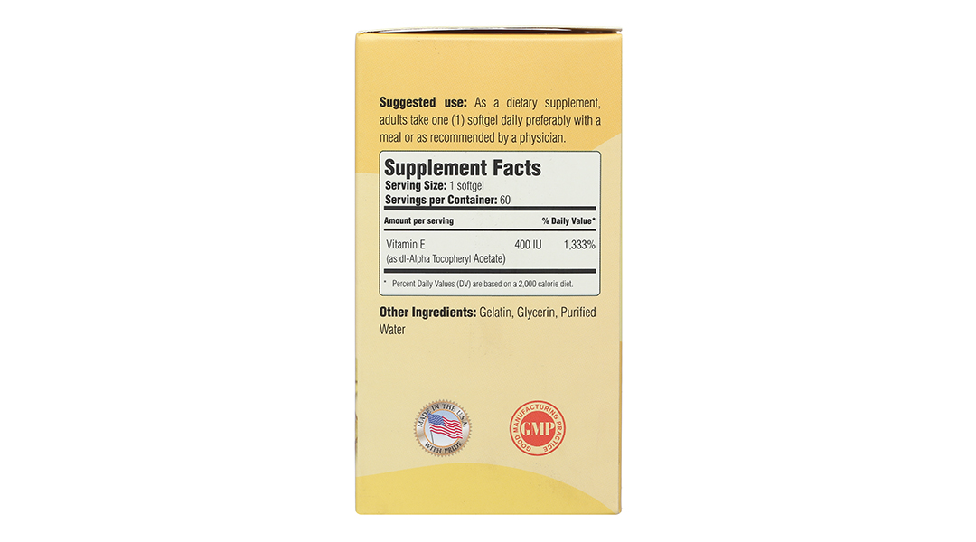 - Mỗi viên nang mềm Optimum Vitamin E 400IU chứa 400IU vitamin E dưới dạng dl-Alpha Tocopheryl Acetate, giúp bổ sung vitamin E cho cơ thể, hỗ trợ ngăn ngừa quá trình oxy hóa và bảo vệ các tế bào khỏi sự tổn thương của gốc tự do. Vitamin E là một chất chống oxy hóa mạnh mẽ, có vai trò quan trọng trong việc duy trì sức khỏe của làn da, tim mạch và hệ thống miễn dịch. Việc bổ sung vitamin E giúp tăng cường sự bảo vệ cho cơ thể, ngăn ngừa các tác hại từ môi trường và tuổi tác.