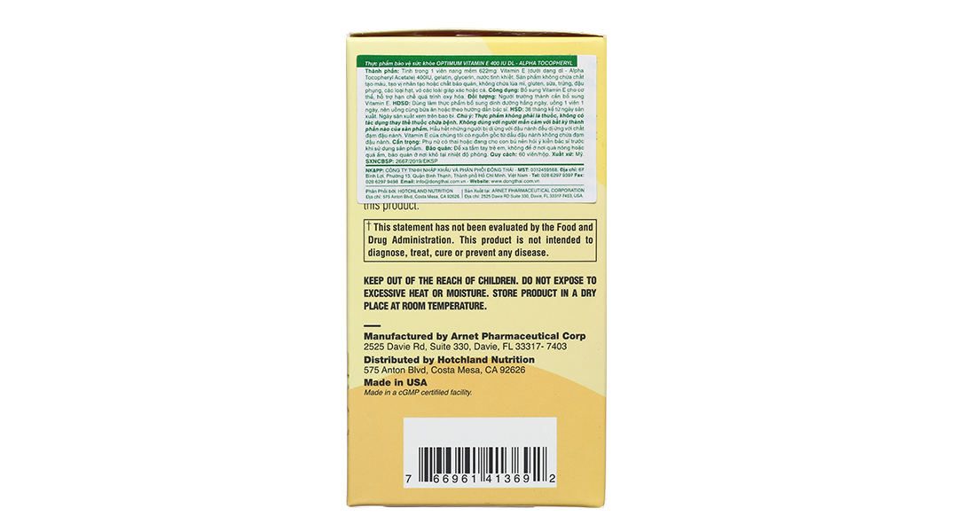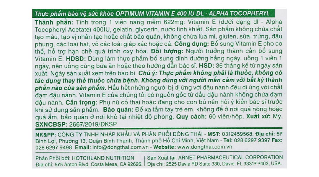 - Optimum Vitamin E 400IU là một sản phẩm đến từ thương hiệu Hotchland Nutrition, một trong những thương hiệu uy tín hàng đầu tại Mỹ. Với cam kết mang đến những sản phẩm chất lượng cao, Hotchland Nutrition luôn chú trọng đến việc sử dụng nguyên liệu đạt chuẩn quốc tế để sản xuất các sản phẩm bổ sung cho sức khỏe. Các sản phẩm của Hotchland Nutrition đã có mặt tại nhiều quốc gia trên thế giới, trong đó có Việt Nam, và được người tiêu dùng tin tưởng lựa chọn nhờ vào sự an toàn, hiệu quả và chất lượng vượt trội.