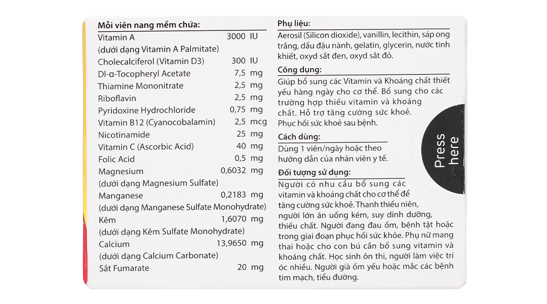 - Giúp bổ sung các vitamin và khoáng chất thiết yếu hàng ngày cho cơ thể. Bổ sung cho các trường hợp thiếu vitamin và khoáng chất.