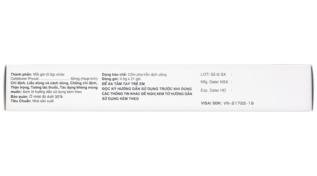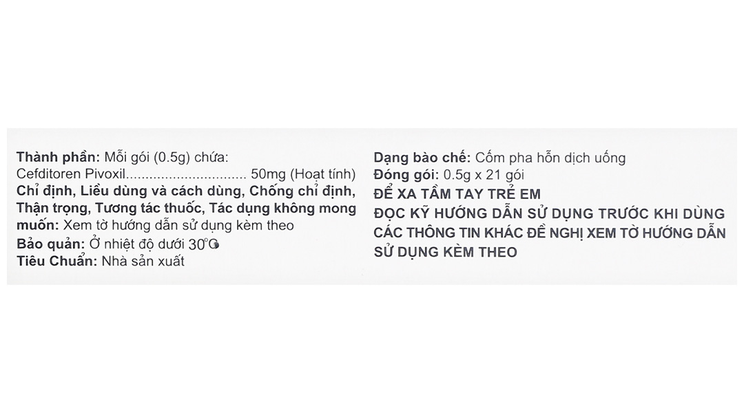 Hoạt chất | Cefditoren (dưới dạng Cefditoren Pivoxil): 50mg |