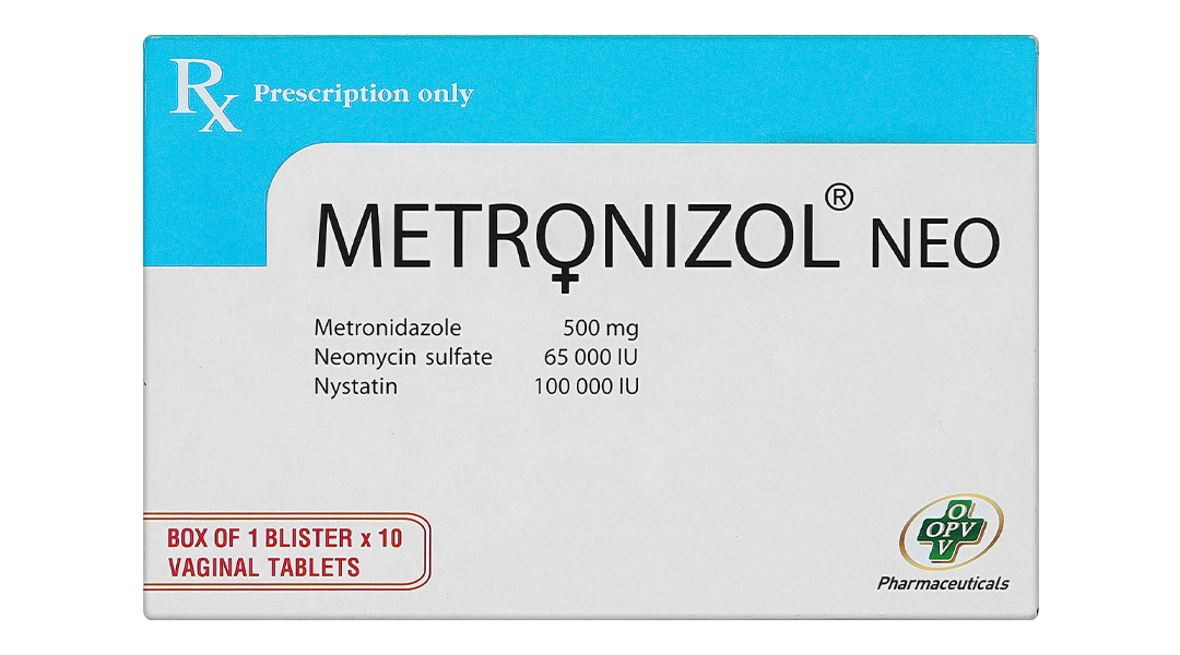 Hoạt chất: Metronidazol 500mg, Neomycin sulfat 65000IU, Nystatin 100000IU.