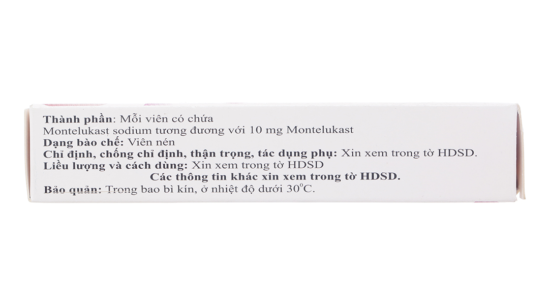 - Montelukast Sodium tương đương với 10mg Montelukast.