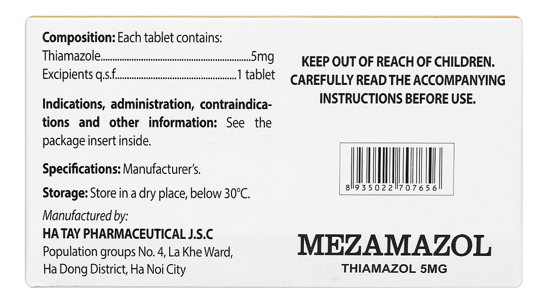 – Thành phần hoạt chất: Thiamazol 5mg.