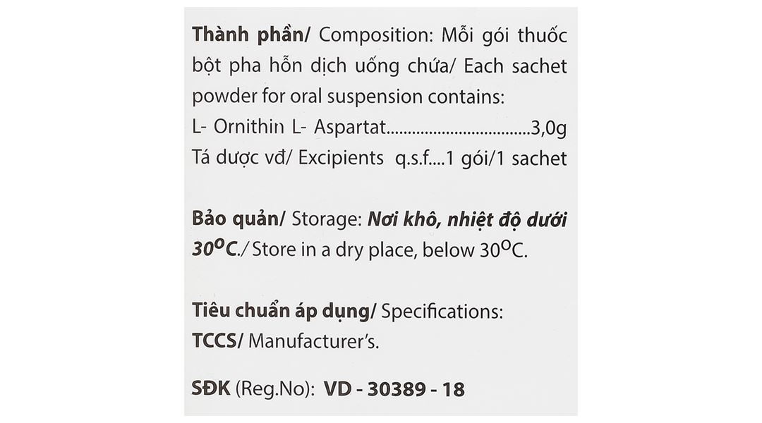 – Phụ nữ mang thai và cho con búThời kỳ mang thai Chưa có tài liệu về độ an toàn cho phụ nữ mang thai nên cần thận trọng khi dùng cho phụ nữ có thai, cân nhắc giữa nguy cơ và lợi ích điều trị và lợi ích điều trị. Thời kỳ cho con bú Chưa có tài liệu chứng minh L-ornithin L-aspartat có vào sữa mẹ hay không nên cần thận trọng khi dùng cho phụ nữ đang cho con bú, cân nhắc giữa nguy cơ và lợi ích điều trị. – Khả năng lái xe và vận hành máy mócDo các triệu chứng của bệnh và việc dùng thuốc này có thể làm giảm khả năng lái xe và vận hành máy móc nên thận trọng khi sử dụng cho những đối tượng này. – Tương tác thuốcChưa có tài liệu báo cáo. |