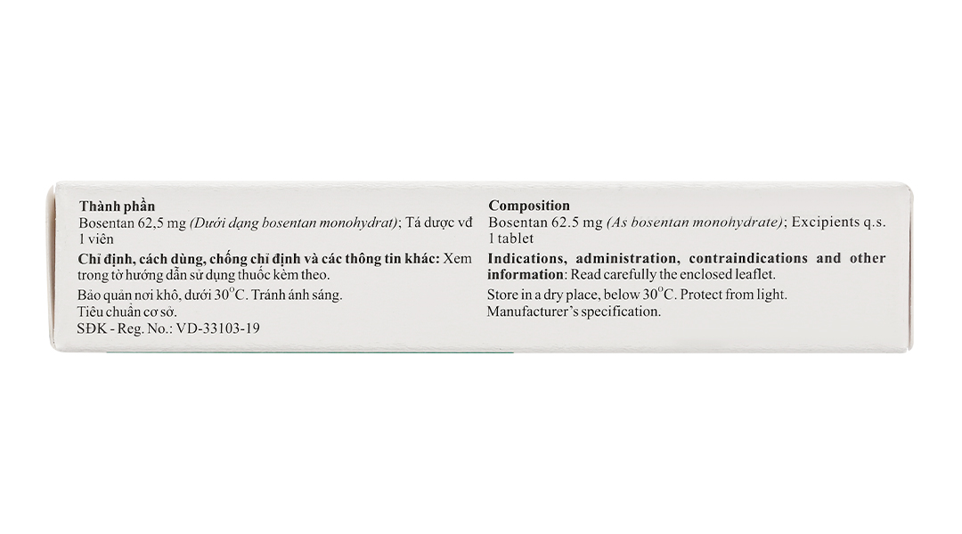Thành phần dược chất: Bosentan (dưới dạng bosentan monohydrat) 62,5mg.