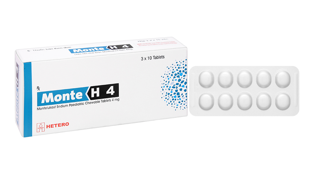 - MONTE-H 4 dùng trước khi đi ngủ nói chung được hấp thu tốt. Bệnh nhân trẻ em từ 2 đến 5 tuổi dùng MONTE-H 4 gặp các tác dụng không mong muốn sau đây: Sốt, ho, đau bụng, tiêu chảy, nhức đầu, đau tai, viêm tai, ngứa. Cũng đã có báo cáo (hiếm gặp) về các tác dụng phụ như các phản ứng quá mẫn bao gồm phản vệ, thâm nhiễm bạch cầu ưa eosin tại gan, chóng mặt, ngủ gà, dị cảm/ giảm cảm giác, co giật, chảy máu cam, tiêu chảy, khô miệng, khó tiêu, nôn và buồn nôn, phù mạch, vết thâm, mày đay, ngứa, nổi ban, ban đỏ nốt, đau khớp, đau cơ bao gồm chuột rút, suy nhược cơ thể/ mệt mỏi, khó chịu, phù, sốt.
