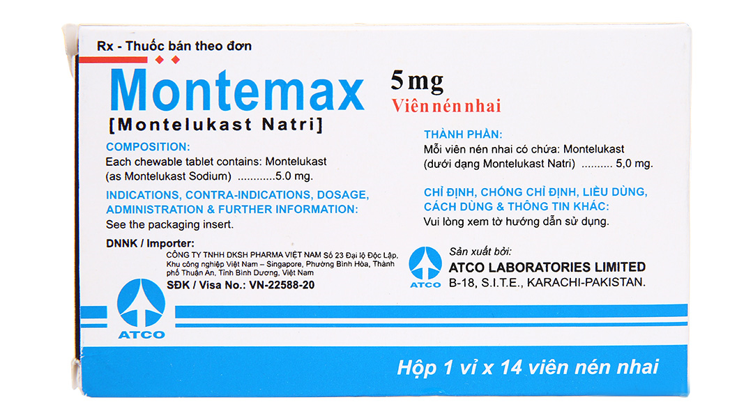 Hoạt chất: Montelukast (dưới dạng Montelukast natri) 5mg.