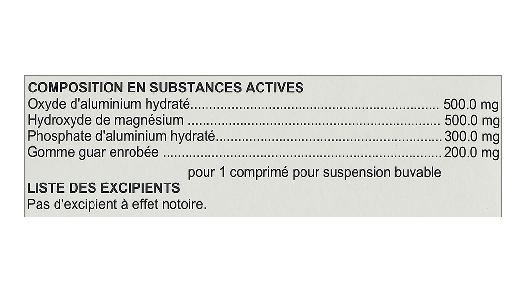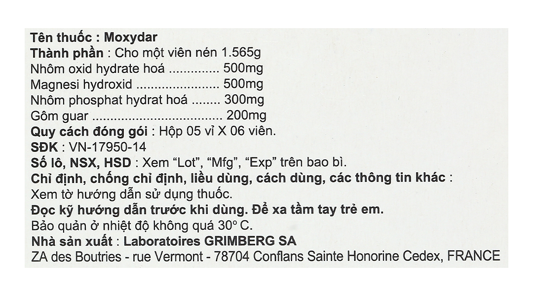 Hoạt chấtAluminum phosphat, Gôm guar, Aluminum hydroxide, Magnesi hydroxyd