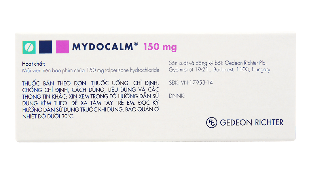 Mydocalm 150mg trị triệu chứng co cứng cơ sau đột quỵ (3 vỉ x 10 viên)