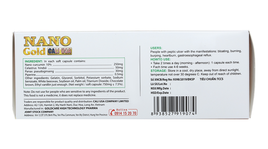 Nano Gold New Cali USA hỗ trợ giảm viêm loét dạ dày hộp 30 viên