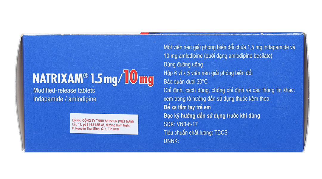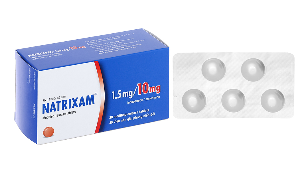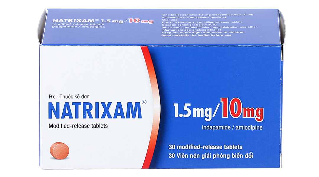 Mỗi viên nén Natrixam 1.5mg/10mg chứa 1,5 mg indapamid và 13,87 mg amlodipin besilat tương ứng với 10 mg amlodipin.